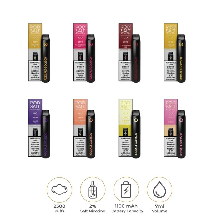 Pod Salt Go Disposable Vape 2500 Puffs is a premium vaping device designed for convenience, quality, and satisfaction. It is a high-performance disposable vape infused with Pod Salt’s award-winning nicotine salt formula, ensuring a smooth and flavorful experience. With a sleek design, pre-filled e-liquid, and a powerful battery, the Pod Salt Go 2500 Puffs is perfect for vapers looking for an easy-to-use and long-lasting device.